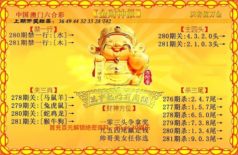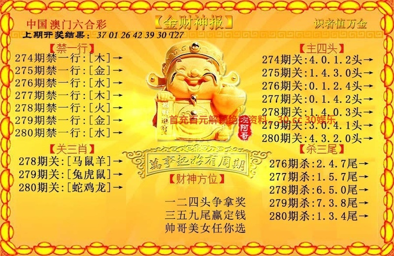 280期☺文官武将☺【文官文官】开:鼠42中 |