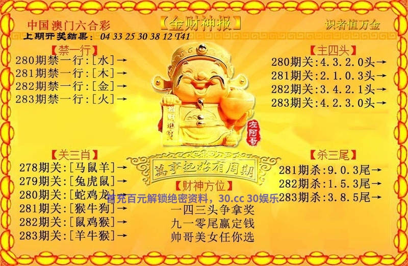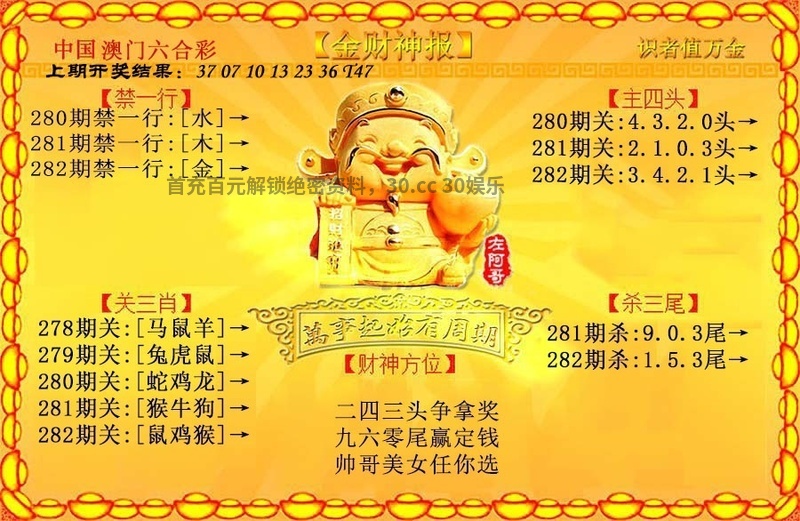 281期☺文官武将☺【文官文官】开:羊47中 |
