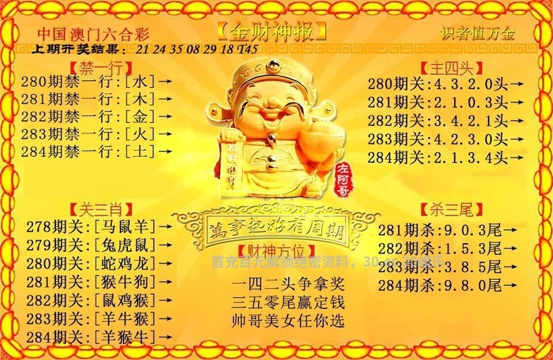 283期☺发财五尾☺【2.3.4.6.8】开:鸡45错 |